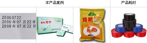 適用于:塑料薄膜(PT、PE、PVC、OPP、KT)、鋁箔、飲料瓶表面打碼;,塑料復合材料、塑料袋、紙(不干膠、卡片)、皮革、布表面打碼;包裝容器袋、塑料制品表面打碼;電子元件外殼打碼。
